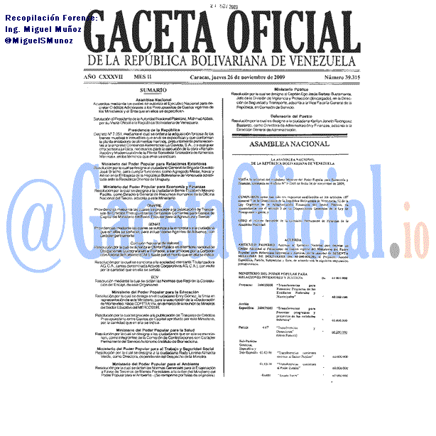 2009: Gaceta 39315: Resolución: Ambiente: Normas Generales para la Enajenación a Favor de Terceros de Bienes Forestales a la Orden del Ministerio del Poder Popular para el Ambiente. (Se reimprime por Fallas de Originales).
