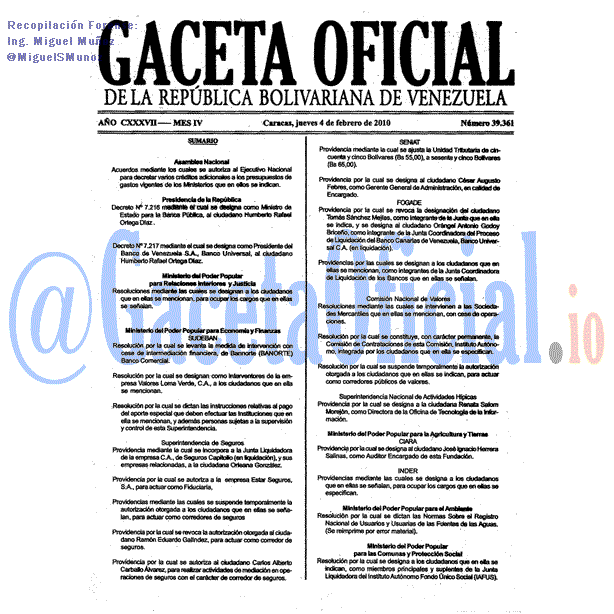 2010: Gaceta 39361: Resolución: Ambiente: Normas sobre el Registro Nacional de Usuarios y Usuarias de las Fuentes de las Aguas. (Se reimprime por error material).