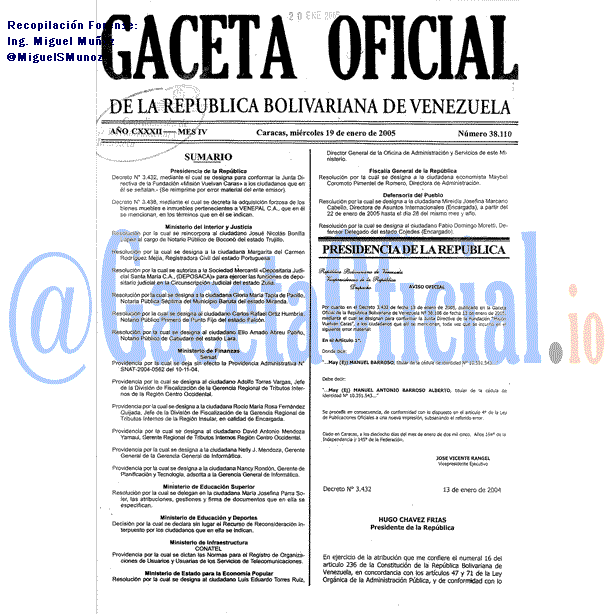 2005: Gaceta 38110: Providencia: CONATEL: Normas para el Registro de Organizaciones de Usuarios y Usuarias de los Servicios de Telecomunicaciones /Ley Resorte/
