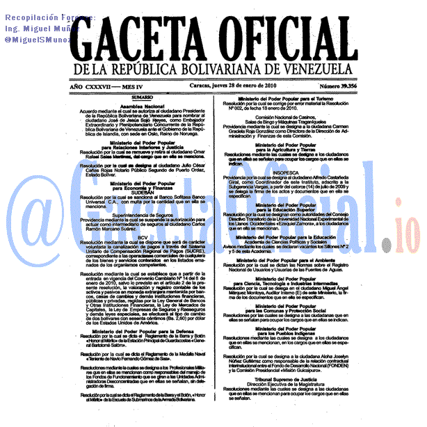 2013: Gaceta 40151: Decreto 01: Se ordena la Supresión del Ministerio del Poder Popular de Planificación y Finanzas, y se crea el Ministerio del Poder Popular de Finanzas y el Ministerio del Poder Popular de Planificación, a Cargo de los Ministros del Pod