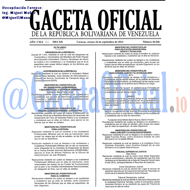 2014: Gaceta 40487: Resolución: Relaciones Interiores, Justicia y Paz: Se establece la Región Estratégica de Investigación Penal (Redip) los Andes, dentro de la Estructura Organizativa y Funcional Transitoria a Nivel Regional del Cuerpo de Investigaciones